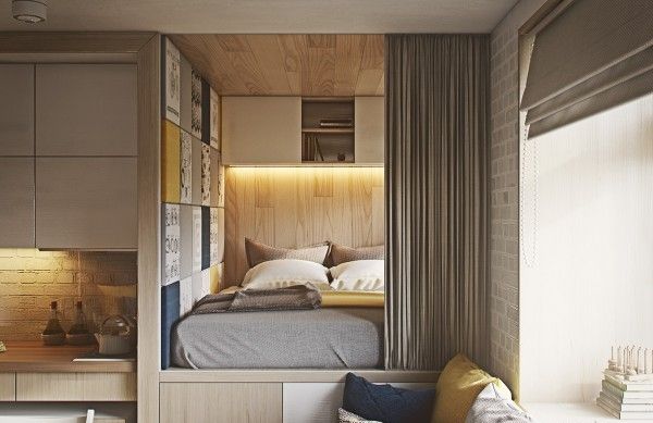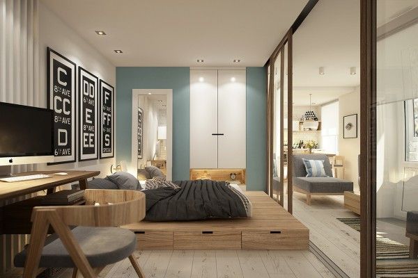 ЭТО ВАЖНО: размещение кровати на подиуме позволяет использовать вертикальное пространство комнаты, организовав в подиуме место для хранения.