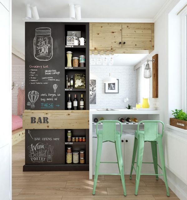 Стильная барная стойка и организация кухонного стеллажа