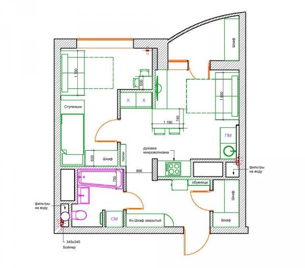 Перепланировка однокомнатной квартиры под студию