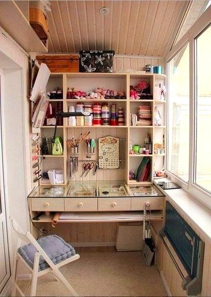 Устраивая мастерскую, помните о звукоизоляции. Не важно, выделяется зона для шумного или тихого хобби, ─ человеку, который им занимается, требуется сосредоточение. Поэтому объединять комнату и лоджию в единое пространство в этом случае не следует. Мебель, полки, сиденья подбираются, исходя из удобства для мастера. Оригинальность дизайну придадут авторские предметы декора или необычная отделка.