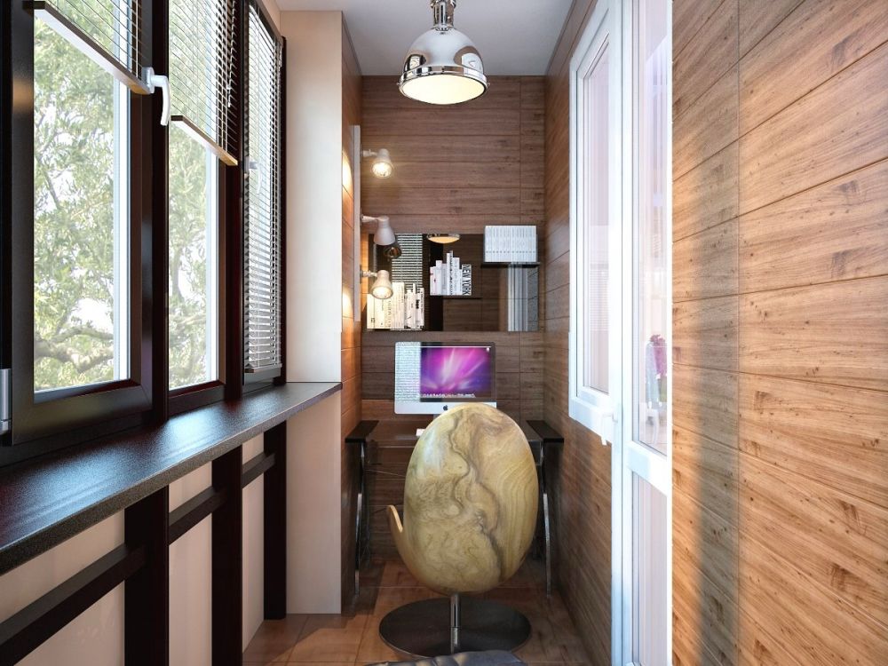 Лоджия ─ рабочий кабинет, отделана пластиковыми панелями под дерево