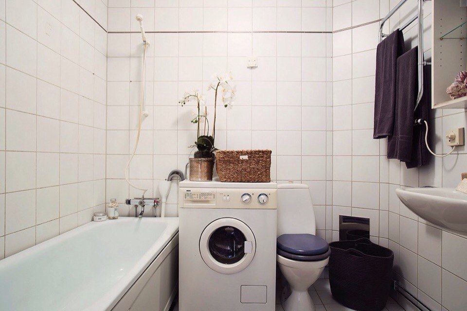 Что касается ванной комнаты, то она также смотрится просторней благодаря белому цвету.