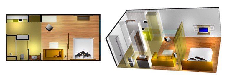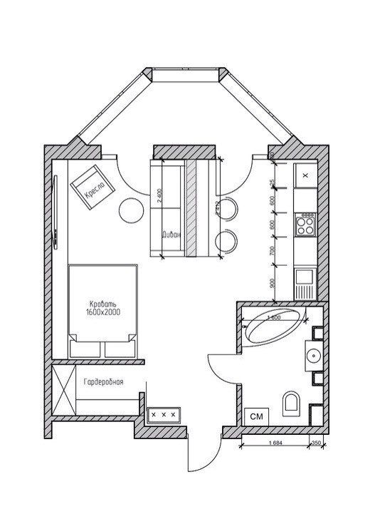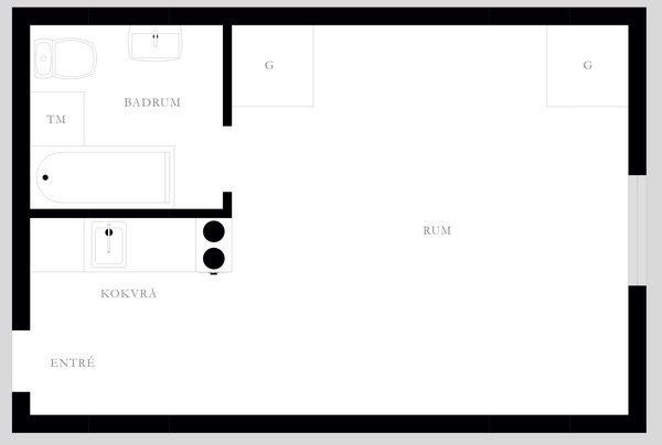 Как видите, и на небольшом пространстве можно создать уютный уголок для отдыха. Такой план квартиры стоит рассмотреть студентам и парам без детей.
