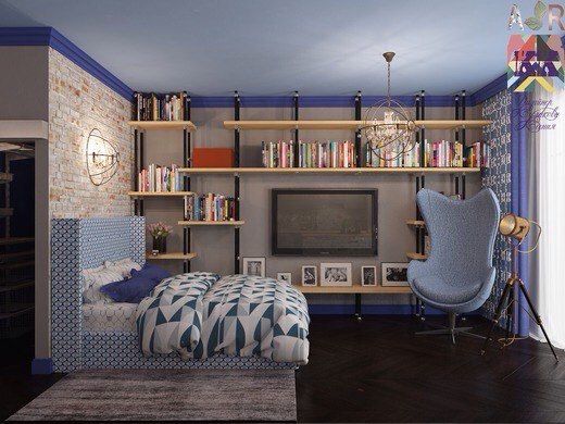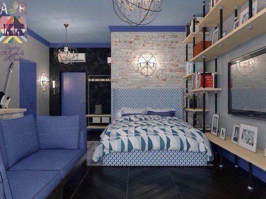 Комната сделана в молодёжном стиле, а значит, будет актуальна для студентов или пар с детьми.