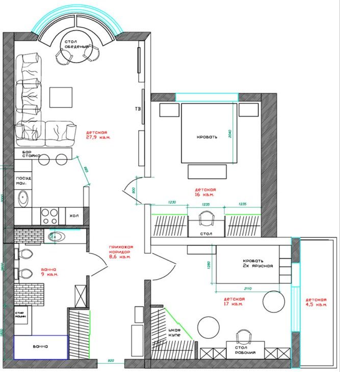 - отдельная детская для ребенка;