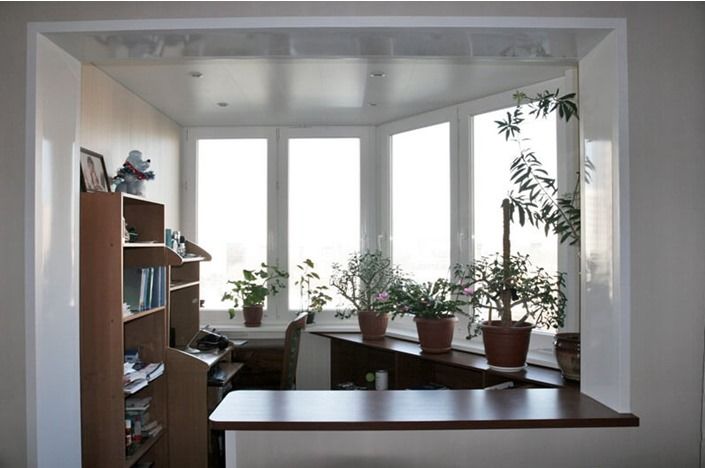 С лоджии сделали прекрасную маленькую отдельную комнатушку. Для этого просто закрыли оконный проем.