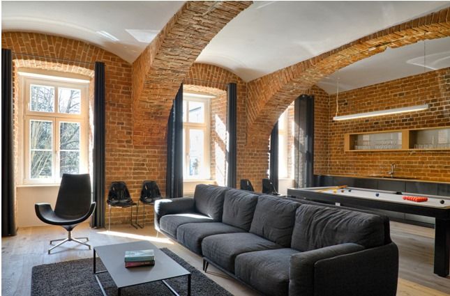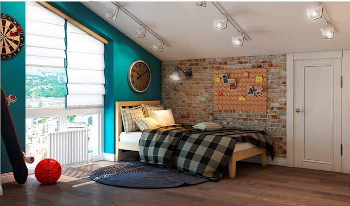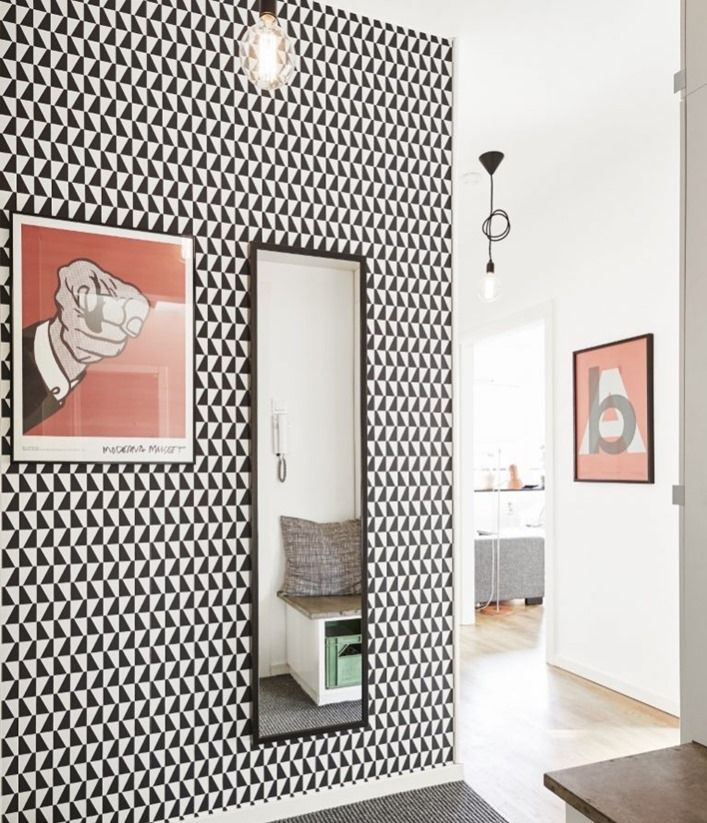 Чтобы все выглядело не слишком стандартно, вместо привычных обоев и краски на стенах используем: