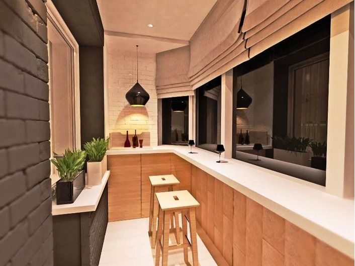 Лоджию стилизовали под бар. Получилось очень неплохое место для отдыха.