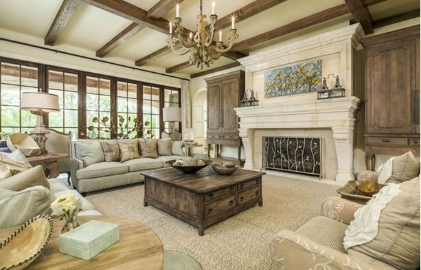 · к примеру, классические детали помещения можно «осовременить» с помощью рисунков, орнаментов и тканей. В нижеприведенном примере классический пуф мы сделали «модерным», однотонным. Мебель покрыли незамысловатым текстилем, «закрасили» витиеватый орнамент на камине.