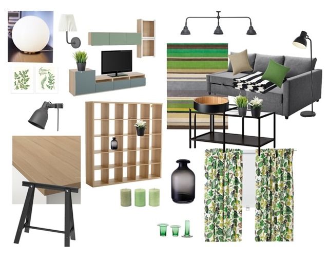 Главным элементом условной гостиной, несомненно, является шкаф с телевизионным прямоугольником на зеленом фоне.