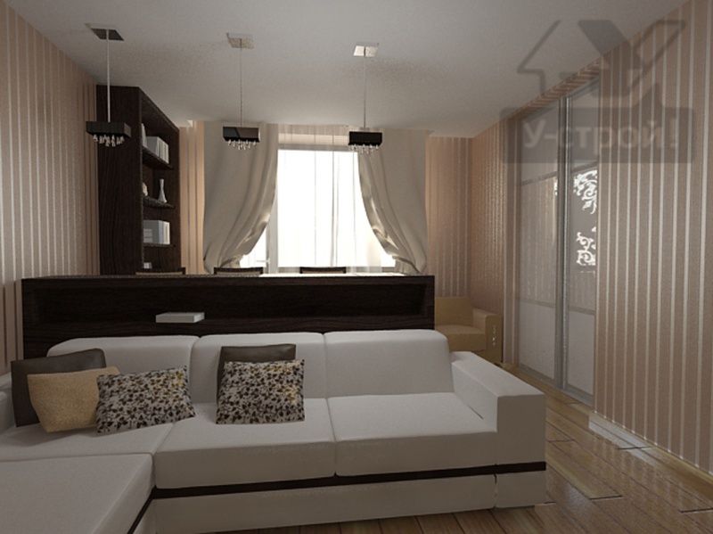 Минусы тоже очевидны. Абсолютно обособленной территории для сна не получится. К тому же придется приложить больше усилий и фантазии, чем при оформлении раздельных гостиной и спальни. Но это даже интересно!