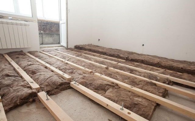 Шумоизоляция пола на лагах в квартире устраивается в заранее созданной обрешётке. Для неё используются деревянные бруски, между которыми располагается материал, а сама обрешётка покрывается досками, фанерой или ДСП.