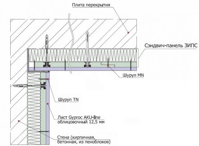 Бескаркасная изоляция реализуется с применением сэндвич-панелей. В них входят гипсокартонные листы и крепления для блокировки вибрации. Гипсокартон в них утяжелён специальными составами.