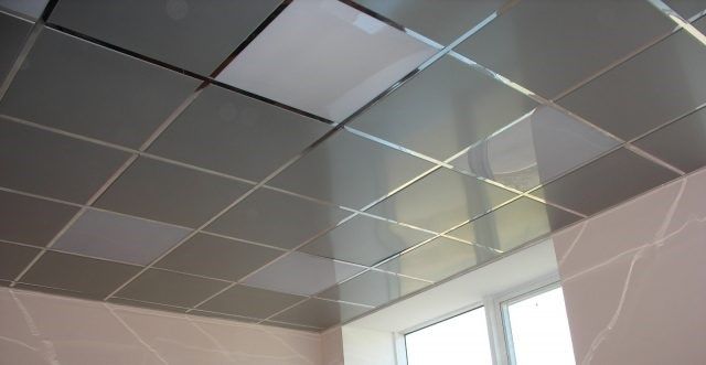- Ставится натяжной или подвесной потолок.