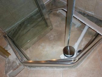 Третья зона – некачественная технология слива и соединения её составляющих. Из-за этого под кабиной накапливается вода. Ещё вода подтекает из треснувшего поддона.