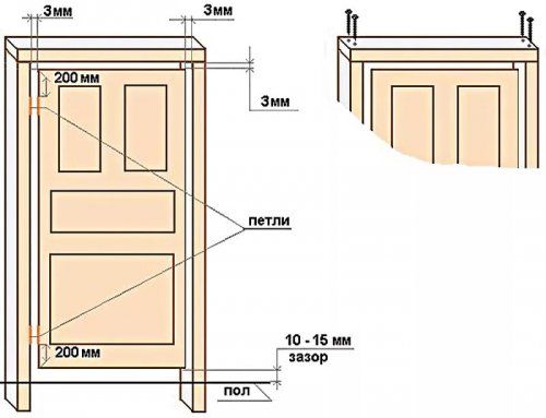 Если ставится обычная дверь, устраивайте петли так, чтобы она открывалась вовнутрь. Порядок монтажа уже описан.
