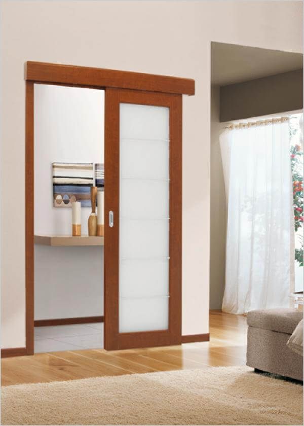 Раздвижные. Устанавливают двери такого типа в ограниченном пространстве. Также они включаются в конструкцию перегородок, когда большие помещения подразделяются на зоны. Они могут иметь одну или две створки. Створки монтируются на специальные ролики, двигающиеся по направляющим компонентам. Полотно движется легко и свободно.