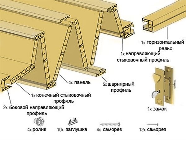 - Петли и кареточные ролики (2, либо 4 шт).