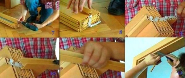 - Стыковая установка под углом 90 градусов. Если нужно собрать коробку самому, то рекомендую именно данный метод. Он намного легче. Здесь важно устранить часть выступа на стыковом участке стоек и перекладины.