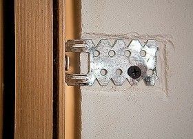Делаем дополнительный крепёж – подвесы. В стене под них устраиваем углубление. Покрываем шпаклёвкой.