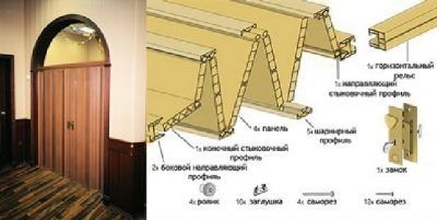 В арочный проём часто устанавливаем легкую межкомнатную дверь. Как правило, это пластиковая гармошка, или её версия из МДФ.