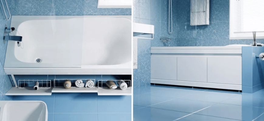И вот тут странность – все пространство внизу (где ножки и отводок в канализацию) почему-то стараются спрятать максимально плотно, закрыв плоскость плиткой. И вся эта работа до первого протекания, потому как должен быть сантехнический доступ вниз. Выход простой – пластиковая задвижка от борта ванной и до пола, которую можно перемещать. А это делать придется обязательно.