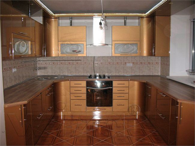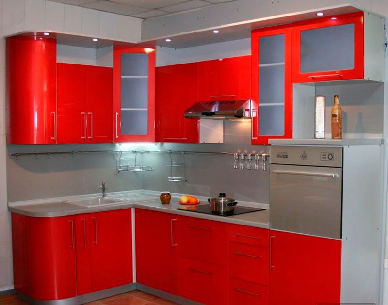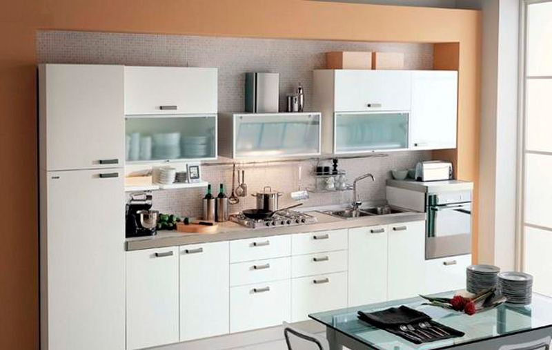 СОВЕТ: Если вы все же решили расположить в маленькой кухне мебель именно так, то выбирайте компактные гарнитуры с возможностью встроенной техники.