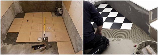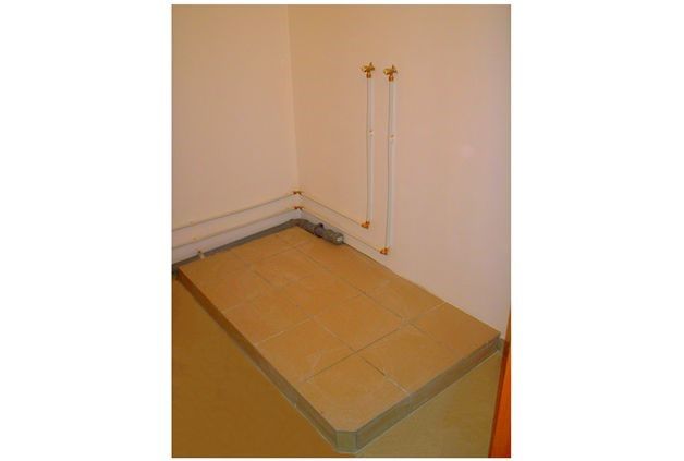 После высыхания площадка облицовывается плиткой. Через 24 часа – швы затираются, через 48 часов – ставится ванна на данный участок, и сифон присоединяется к канализации.