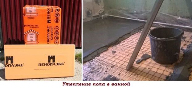 Зону, окружающую ванну, покройте пеноплексом, слоем 3-4 см, кладите его прямо на гидроизоляцию.