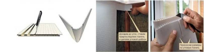 - Приставляем узкий элемент панели к углу, сгибаем. По образцу отмеряем участок загиба на изделии. Альтернатива: с помощью строительного фена направляем поток воздуха на это участок, нагреваем его и сгибаем. Так получается переход без швов. Здесь главное не расплавить панель и действовать крайне аккуратно.