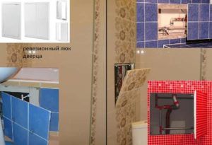 - При сборке каркаса создаём дверцу. Она облегчит работы с счётчиками, заменой труб и т.д. Изделие приобретается отдельно. Это небольшая рама с дверкой. По её параметрам в конструкции устраиваем место для него. К главному каркасу добавляем профили, усиливаем его с помощью вертикальных планок. Ставим рамку и скрепляем её саморезами или клеем.