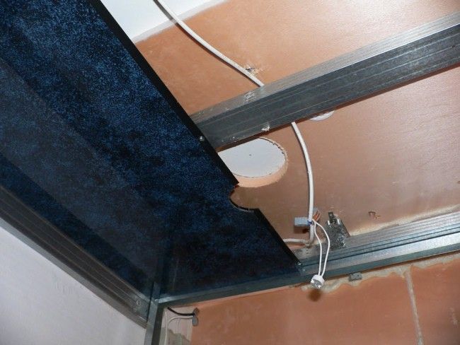 Монтируя полотна с отверстиями для освещения, выпускаем провода для облегчённого подключения света: