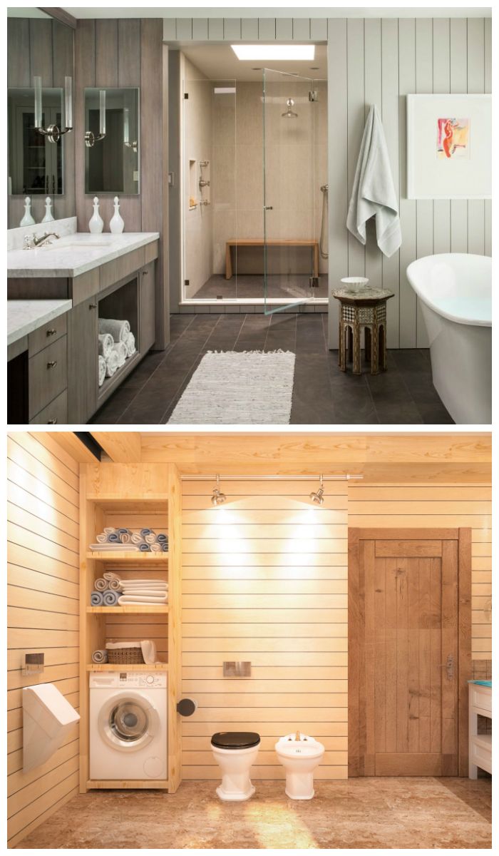 - Отделка ванной в деревянном доме. Отличный загородный вариант. Соблюдается свобода монтажа (доступен любой способ и направление, и вертикаль, и горизонталь)