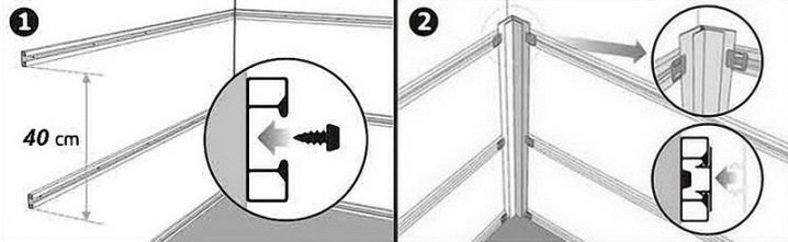 - Монтаж профиля на углу. Крепим его в участках, где контактируют металлические рёбра, вверху и внизу.