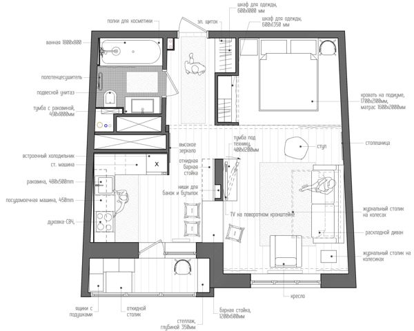 Перепланировка однокомнатной квартиры под студию