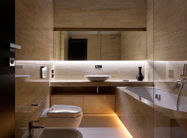 В ванной комнате небольшого размера одним из пунктов основного выбора в дизайне является освещение. Светильники лучше всего выбирать такие, чтобы они давали рассеянный свет и имели небольшие размеры.