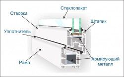 Для изготовления профиля задействуется поливинилхлорид. Для его армирования применяется сталь. Благодаря ей он становится намного прочнее. Внутри него есть перегородки. Они делят его на несколько отсеков (камер). Какие-то из них – пустые. А какие-то наполняет армирующий материал. Чем больше численность отсеков, тем развитее такие характеристики профиля: шумо- и теплоизоляция. (шумоизоляция – ШИ, теплоизоляция – ТИ)