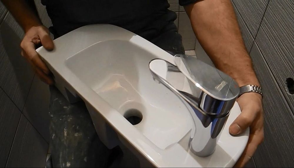 - Если есть гигиенический душ, то обязательно поставьте, хоть маленькую раковину. Это позволит мыть руки перед выходом из туалета.