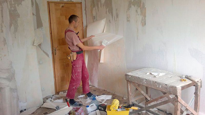После этого можно делать ремонт и начинается он с демонтажных работ. Если на стенах имеются обои, их необходимо полностью удалить.