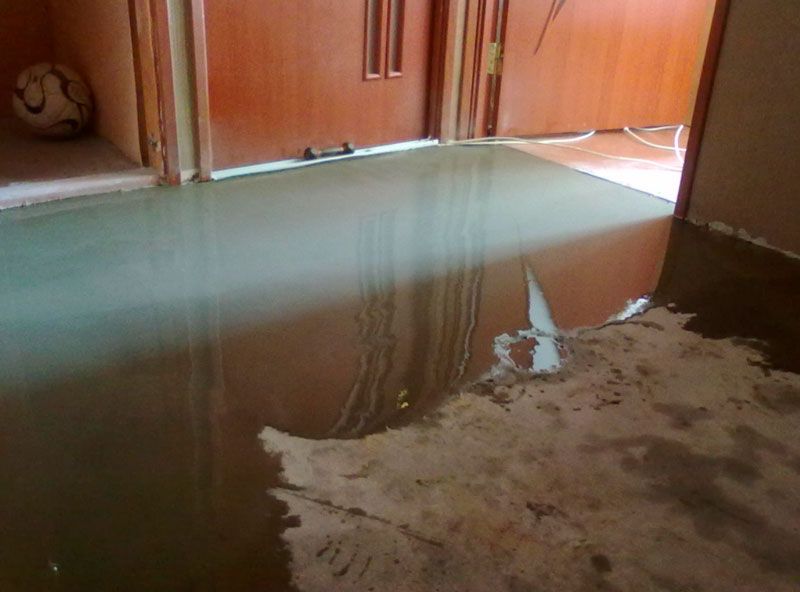 Для пола можно использовать самовыравнивающие смеси. На фото видно, что выравнивание пола может быть частичным.